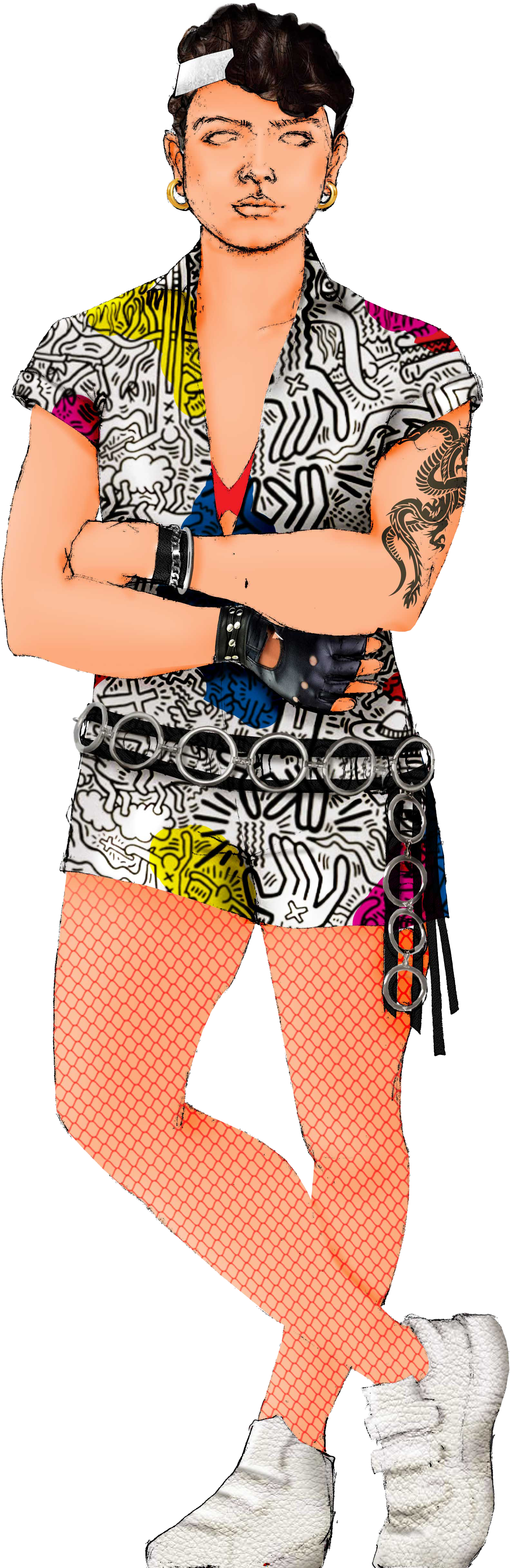 Hand drawing and painting à la Keith Haring. Fabric marker on Linen
