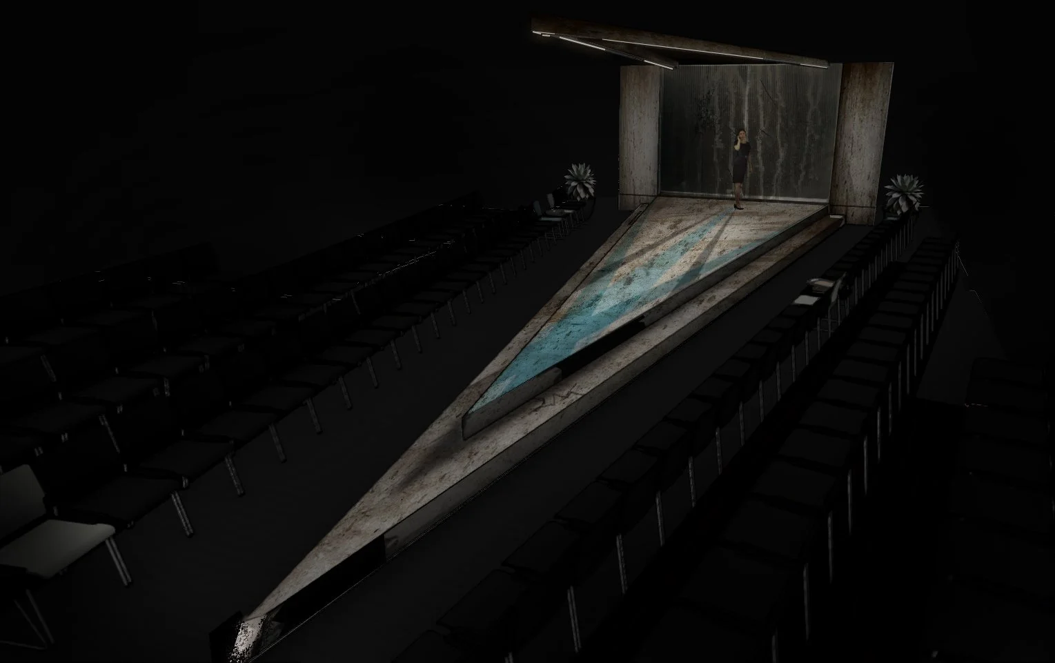 And She Would Stand Like This is a show at the crossroads of Euripides The Troyan Women and Jennie Livington’s Paris is Burning, set in a hospital waiting room. Below are a few images of the rendered digital set model.